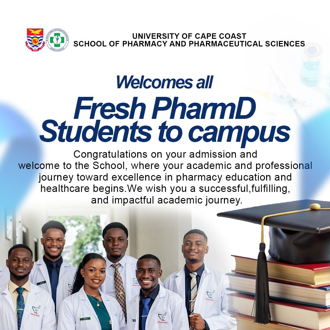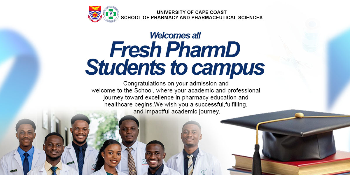 The School has a total of forty (40) staff comprising twenty-two (22) academic staff and eighteen (18) non-academic staff. The School is strategically positioned in the University of Cape Coast for the academic and professional development of not only professional pharmacist, but the capacity building of future generations of academics and scholars in the field of Pharmacy & Pharmaceutical Sciences. SoPPS offer you many great possibilities by patnering, enrolling and sponsoring. You can contact the School Faculty Officer or the Dean for more details via sopps@ucc.edu.gh. To read more about SoPPS, click here
